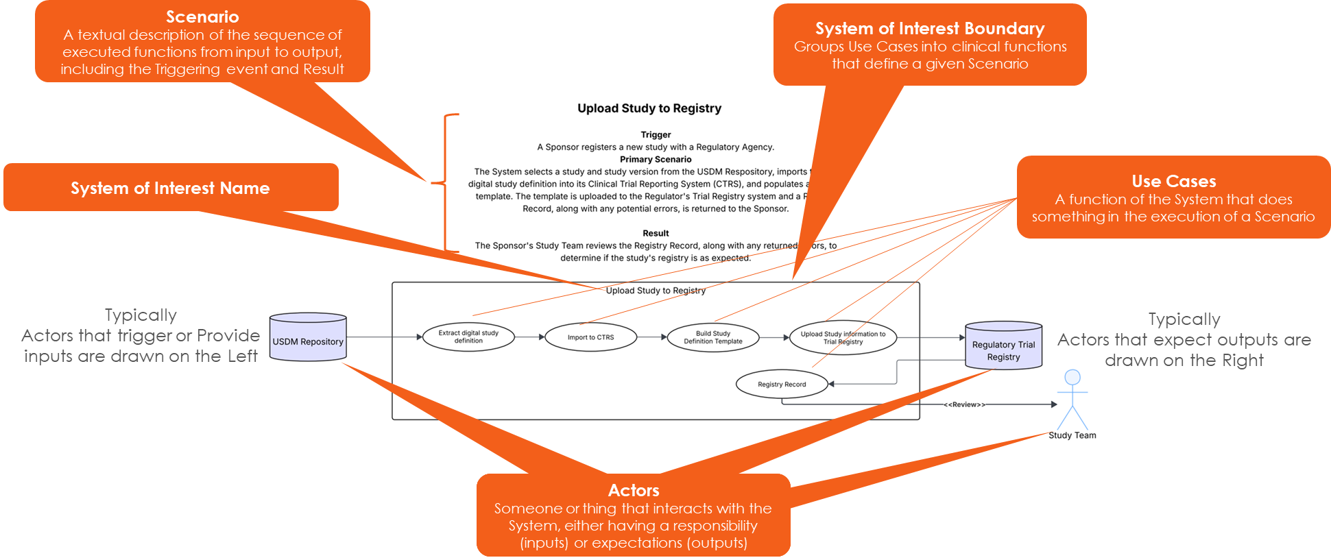- ACTORS: the entities that interact with the System of Interest, either providing inputs or receiving outputs.